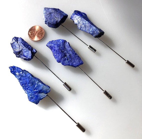 Lapis Lazuli Lapel Pin, Rough Gemstone Stick Pin. Blue, Raw Stone