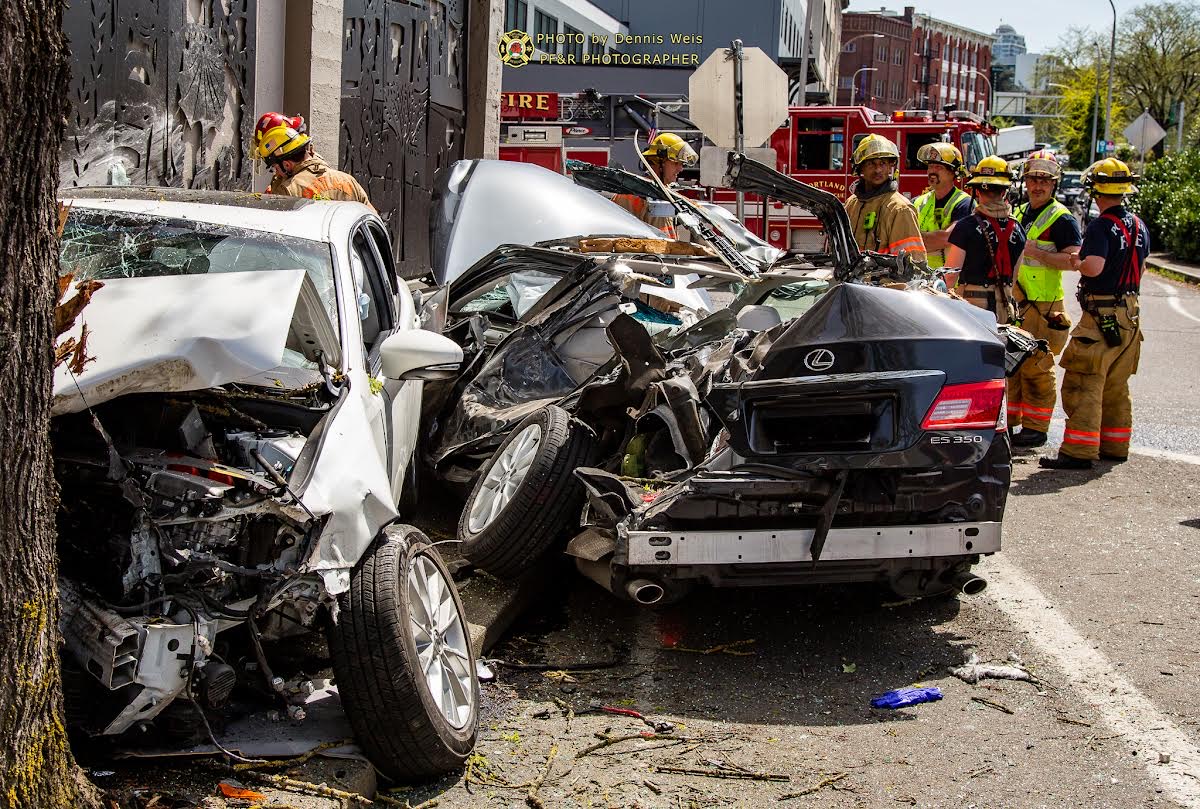 2 people injured in serious 2 car crash in downtown Portland